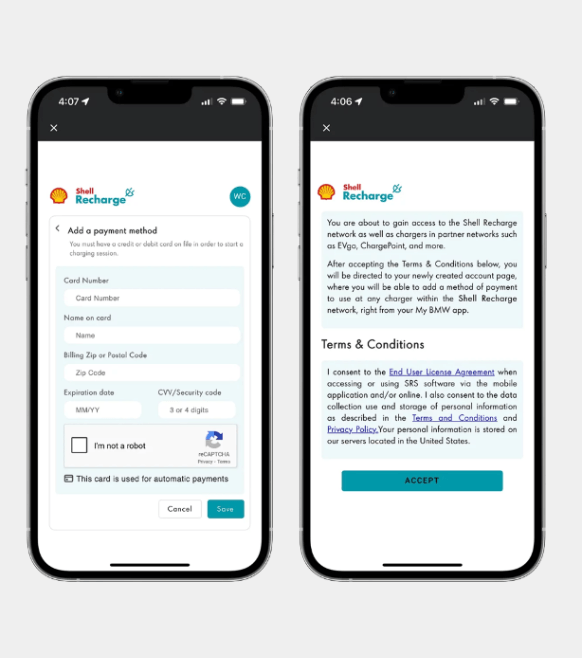 Step 3: Create an account. Follow the prompts in the app to create your account and input your payment method before saving your information. *Compatible with the All-Electric MINI Countryman, The All-Electric MINI Cooper SE 3 Door and MINI Countryman Plug-in Hybrid. All marks are the property of their respective owners.